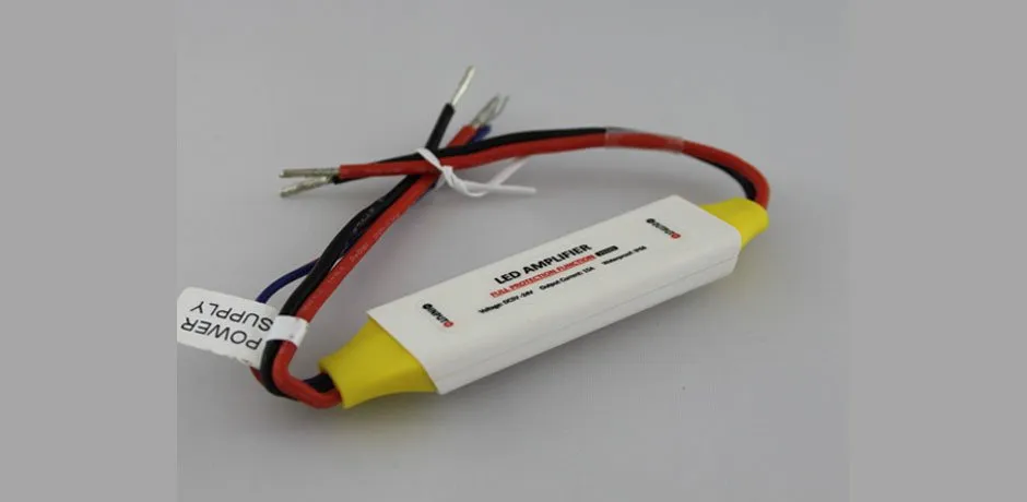 El amplificador puede trabajar entre 6 VDC y 24 VDC, pero el voltaje debe ser el mismo tanto en los LED que aportan la señal, la fuente de alimentación y los LED a alimentar. El amplificador no puede trabajar con diferentes voltajes de entrada y salida.