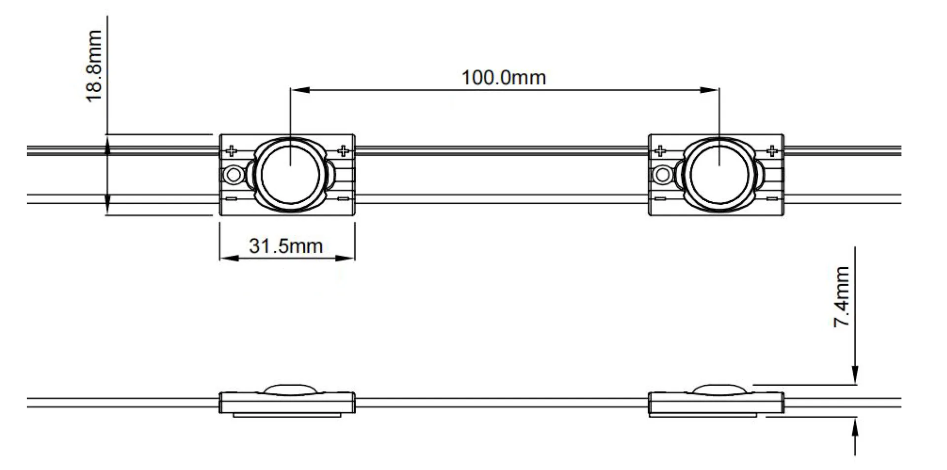 | Módulos por metro lineal | 10 módulos (con separación de 100 mm) |