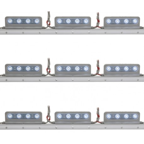 Una de las grandes ventajas del sistema Tetra Snap es que permite regular el nivel de brillo simplemente modificando la separación entre módulos sobre el carril, alcanzando hasta 1.000 lúmenes por pie en modo de máxima potencia. Esto elimina la necesidad de mantener múltiples referencias de módulos para distintas profundidades o niveles de iluminación.
